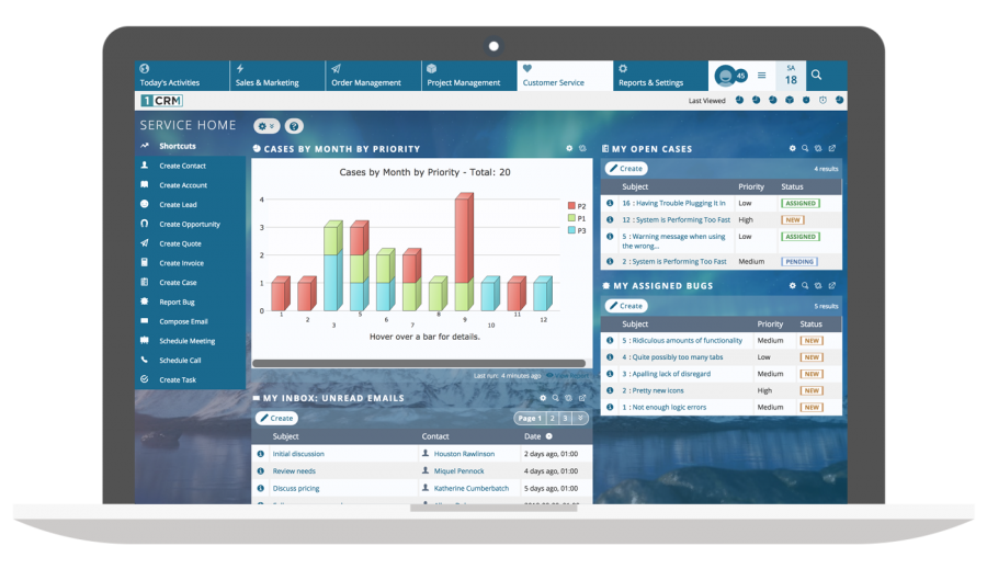 Software Bugs are defects or features associated with a specific revision of a particular software product. Tech firms may manage and track Bugs through their life-cycle using 1CRM. Bugs may be created automatically from service cases or from emails, providing a quick and convenient workflow.