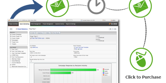 By combining a Web Site Lead Form with Dynamic Target Lists and a Drip-Feed Campaign, you get a completely automated system that collects leads, adds them to a target list, and then sends out a series of timed and personalized emails to the leads. Each lead is added to the list on a different date, but each will receive their emails with the same timing relative to the date they were added to the Target list. This is the most powerful Marketing feature available in 1CRM. It allows you to report on these Leads by their stage in the campaign process, and track conversion rates by the stage of the campaign process – extremely useful capabilities.