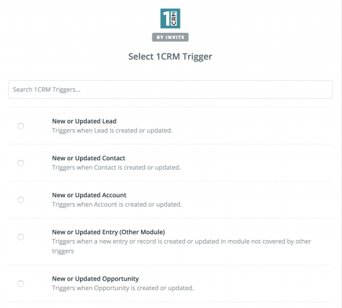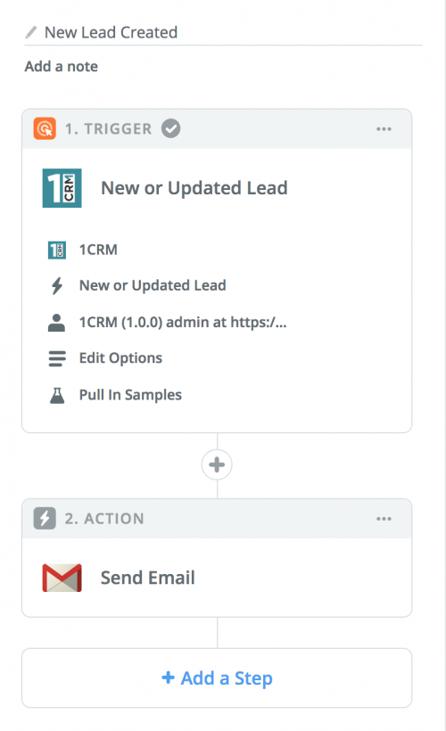 “Zaps” (Zapier’s name for app workflows) can be created in minutes. Use them to automatically add contacts to 1CRM from new form submissions, send new contacts to mailing lists, and more!