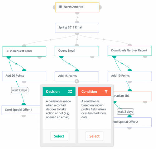 Campaigns include a visual drag ‘n drop Campaign Builder to design Campaign Workflow, including Contact Sources, Decisions, Conditions and Actions. Generate reports of your key analytics.