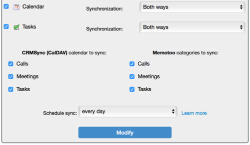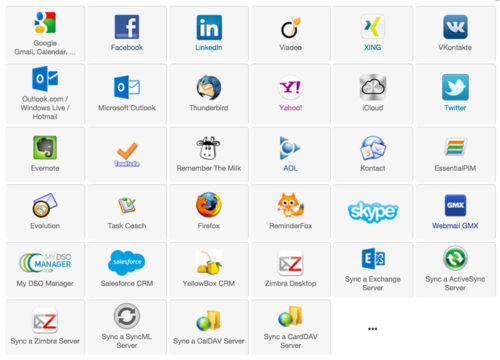 Memotoo lets you sync this information to a wide range of products and services – as you can see here:
