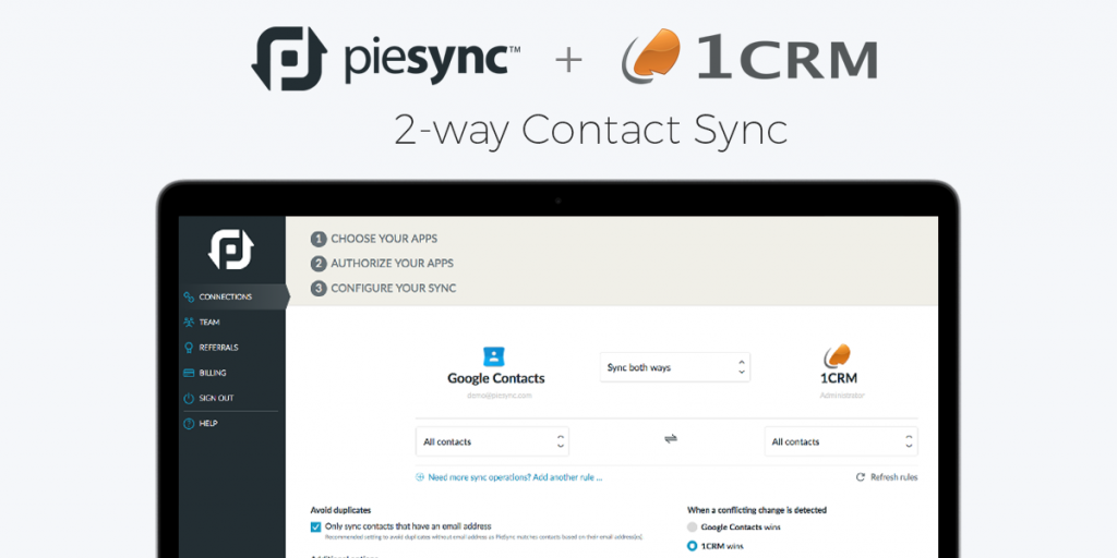 Great news! 1CRM now integrates with PieSync – enabling you to sync your 1CRM contacts with many other apps.